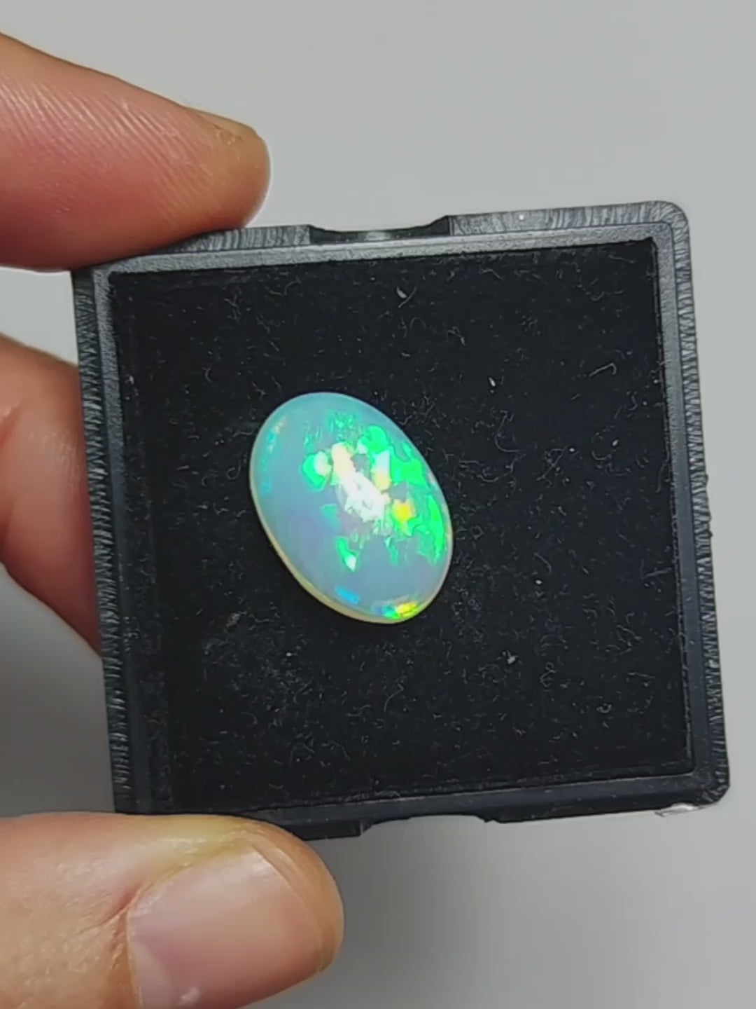 Éste ópalo tiene un patrón y brillo natural que lo define. Su opalescencia es muy intensa incluso sin luz directa.