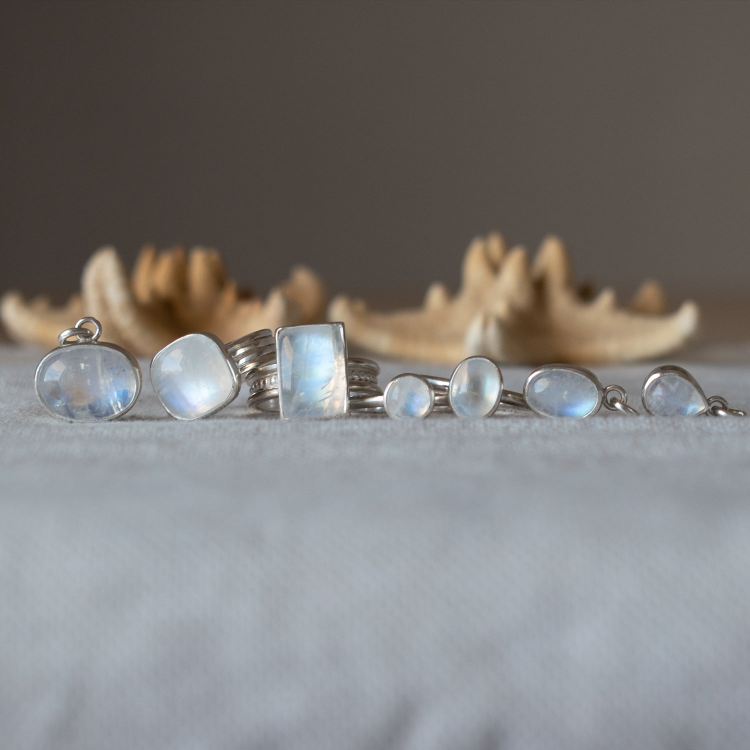 Es una piedra asociada a los nuevos comienzos, la protección emocional y la energía femenina. Cada joya se crea artesanalmente, respetando la forma y luz de la piedra para que su efecto sea aún más especial.