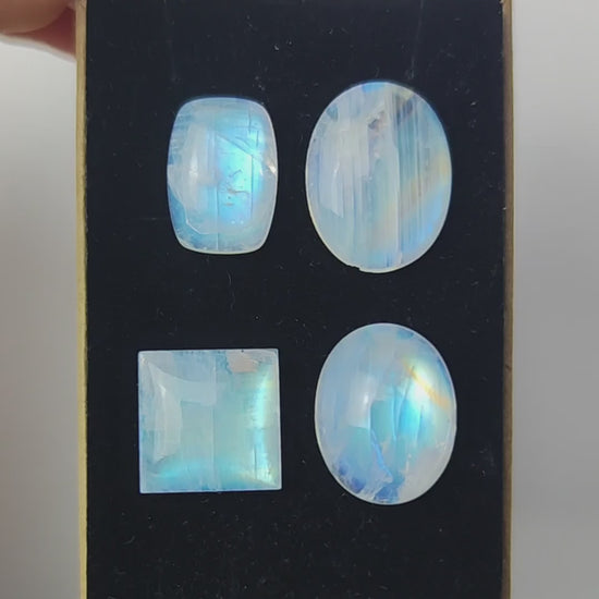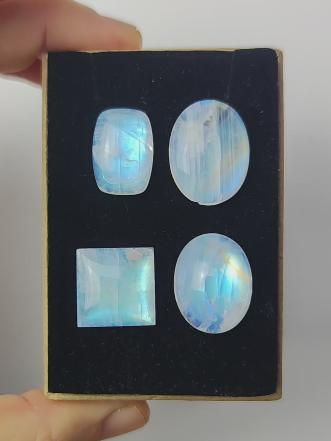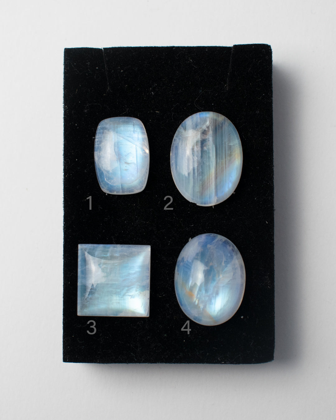 En esta ocasión hemos seleccionado 4 piedra luna arcoíris, las cuales ofrecemos a un precio especial para poder disfrutar de tu anillo favorito o collar básico (cadena 45cm incluida).